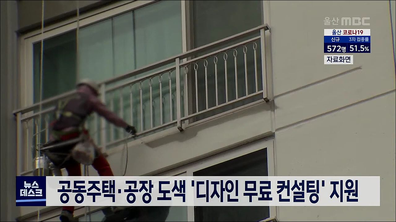 울산시는 도시와 산업단지 미관 개선을 위해 이달부터 '색채디자인 컨설팅 지원 사업'을 추진합니다. 이 사업은 주택이나 공장의 도색 디자인을 무료로 컨설팅 해주는 것으로, 지원대상은 300세대 미만 공동주택이나 공장 등 입니다. 신청은 울산시 도시재생과로 전화하면 되며 선착순으로 지원할 예정입니다.