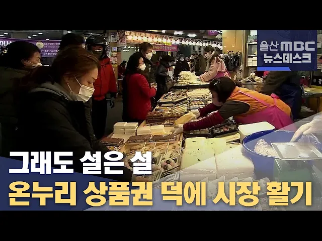 ◀ANC▶ 코로나 확진환자가 연인 최다를 갈아치우고 있지만 설 대목을 맞은 시장은 활기로 넘쳤습니다. 일상회복 지원금으로 온누리상품권이 지급되면서 전통시장을 찾는 시민들이 많았습니다. 김문희 기자. ◀END▶ ◀VCR▶ 울산 남구 신정시장. 설을 이틀 앞두고 한 떡집 앞에 수십명의 손님들이 길게 늘어섰습니다. ◀...