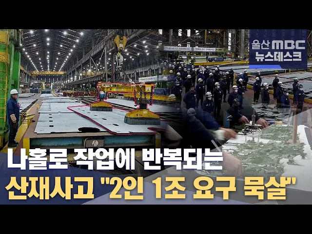 금속노조가 오늘(1/26) 고용노동부 울산지청 앞에서 기자회견을 열고 고용노동부가 현대중공업을 철저히 조사해서 강력하게 처벌하라고 요구했습니다. 노조는 지난 24일 사고가 발생한 크레인의 1인 작업 위험성과 오작동 가능성 때문에 회사에 안전 대책 마련을 여러 차례 요구했지만 받아들여지지 않았다고 주장했습니다....