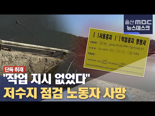 ◀ 앵커 ▶ 저수지 수문개폐장치를 점검하던 50대 일용직 노동자가 물에 빠져 숨졌습니다. 제대로 된 안전 장비 없이 작업을 하다 사고가 발생했는데 발주처와 시공사 모두 작업 지시를 내린 적이 없다고 책임을 피하고 있습니다. 김문희 기자입니다. ◀ 리포트▶ 울산 울주군의 한 저수지. 저수지 아래에 수문을 열고 닫는 장...
