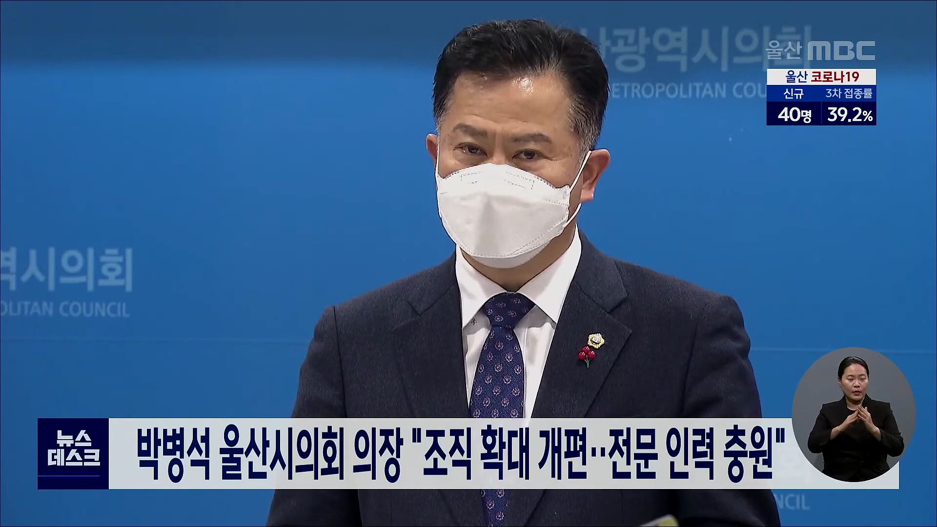 박병석 울산시의회 의장 "조직 확대 개편..전문 인력 충원"