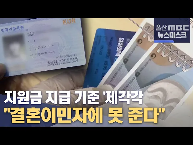◀ANC▶ 울산에 사는 결혼 이민자 또는 영주권자는 울산시가 지급하는 코로나19 지원금을 받지 못하고 있습니다. 이 때문에 상대적 박탈감을 호소하는 민원이 잇따르고 있는데요. 반면, 다른 일부 지자체에서는 결혼이민자 등에게도 지원금을 주고 있어 지급 기준을 놓고 논란이 일고 있습니다. 김문희 기자. ◀END▶ ◀V...