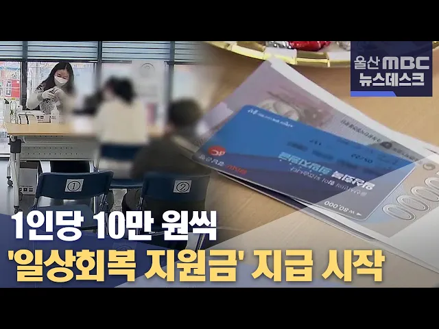 ◀ANC▶코로나19 장기화로 어려움을 겪고 있는 시민들의 일상 회복을 돕기 위한 지원금 지급이 시작됐습니다. 1인당 10만 원씩, 모두 1천억 원대 규모여서 침체된 지역 경제에 보탬이 될 전망입니다. 최지호 기자◀END▶읍면동 행정복지센터마다일상회복지원금 신청 창구가 별도로마련됐습니다.지난해 11월까지 울산에 주...