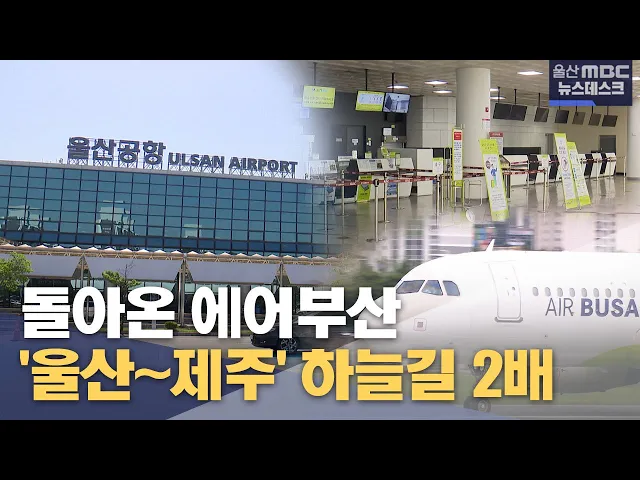 [앵 커] 지난 2022년 울산공항에서 철수했던 에어부산이 울산공항으로 돌아와 7월부터 제주 노선을 운항합니다. 울산~제주 노선이 두 배로 늘어나 김해공항까지 이동해야 하는 번거로움이 줄어들 전망입니다. 최지호 기자. [리포트] 에어부산이 7월부터 울산~제주 노선을 하루 두 차례 왕복 운항합니다. 2022년 울산공항을 ...