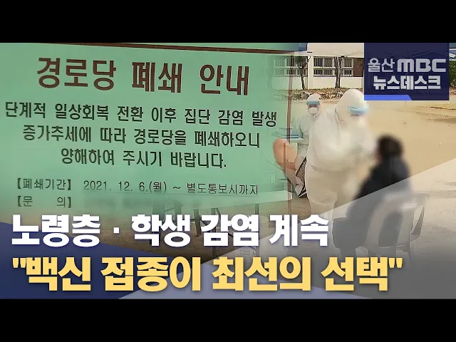 ◀ANC▶12월이 이제 열흘밖에 지나지 않았는데 울산의 코로나19 확진자 수가지난달 전체 확진자 수에 육박하는 등 확산세가 거셉니다.특히 백신효력이 떨어진 노령층과백신 미접종자가 많은 학생들이 잇따라 감염되고 있어서, 결국 백신 접종이 최선의 대책이 될 수밖에없는 상황입니다.정인곤 기자.◀END▶◀VCR▶울산...