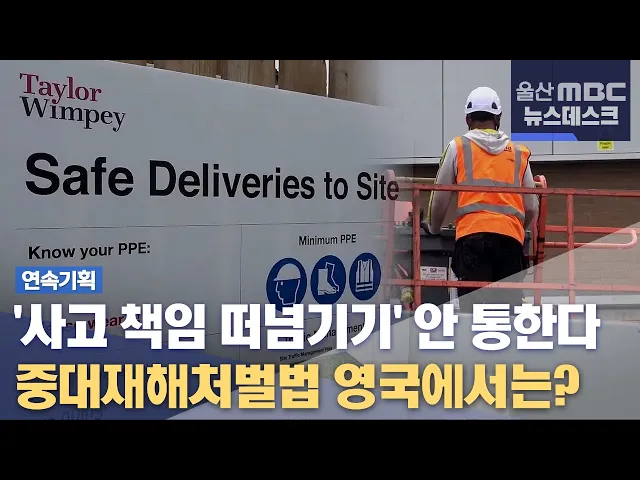 ◀ANC▶산재사망사고가 일어나면 사업주까지 처벌하는 '중대재해처벌법' 시행이 불과 한달여 앞으로 다가왔지만, 우리 사회는 여전히 논란이 많습니다. 울산MBC는 중대재해처벌법을 세계 최초로 시행한영국의 모범 사례를 통해, 우리 산업계가 발전하기 위한연속기획을 마련했습니다.오늘은 첫 순서로, 산업재해가 노동자 ...