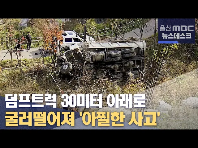 공사현장에서 작업 중이던 대형 덤프 트럭이 산책로로 굴러 떨어지는 사고가 발생했습니다 트럭 운전자는 사고가 나기 전에 차에서 뛰어내렸고, 사고 당시 산책로에 주민들이 없어 인명 피해는 발생하지 않았습니다. 정인곤 기자15톤 덤프트럭이 종잇장처럼 구겨져 형체를 알아보기 힘듭니다. 트럭은 옥동~농소 간 도로 공...