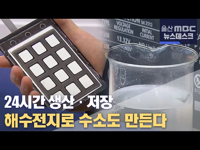 ◀ANC▶바닷물에서 전기를 만드는 해수전지를 이용해수소를 생산하고 저장하는 기술이울산과학기술원에서 개발됐습니다.바닷물에 들어있는 염분 성분인나트륨과 물을 반응시켜 수소를 뽑아내는데상용화 될 경우 24시간 바닷물을 이용해수소를 생산할 수 있다고 합니다.이용주 기자.◀VCR▶◀END▶기존 알칼리금속 수소저...