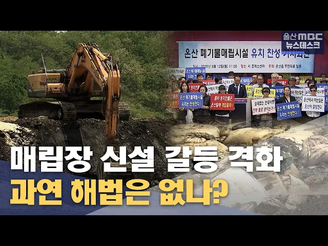 [앵커]울주군 온산읍에 추진중인 산업폐기물 매립장 건설을 두고 주민들간 갈등이 격화되고 있습니다. 얼마 전 반대 주민들이 집회를 연 데 이어 온산지역 이장과 주민자치 위원들이 하루 빨리 매립장을 허가해 달라고 맞불 기자회견을 열었습니다. 매립장 포화를 앞두고 지자체들의 고민은 더 깊어지고 있습니다. 이상욱 ...