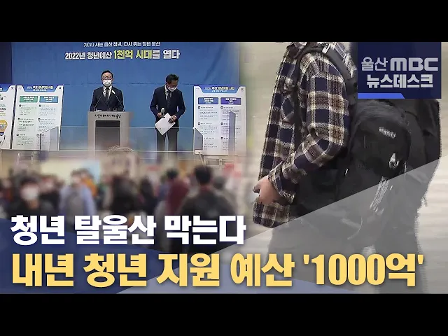 울산시는 내년에 주거·교육·일자리·복지 등 '청년예산 1000억원 시대'를 연다고 밝혔습니다. 시는 청년예산은 모두 1076억원으로 역대 최대 규모이고, 올해보다 491억원 더 늘어났다고 설명했습니다. 시는 대학 졸업 후 사회에 첫발을 내딛는 만24세 청년 1만4000여명에게 1인당 연간 50만원의 청년수당을 지급하는 등 76개...