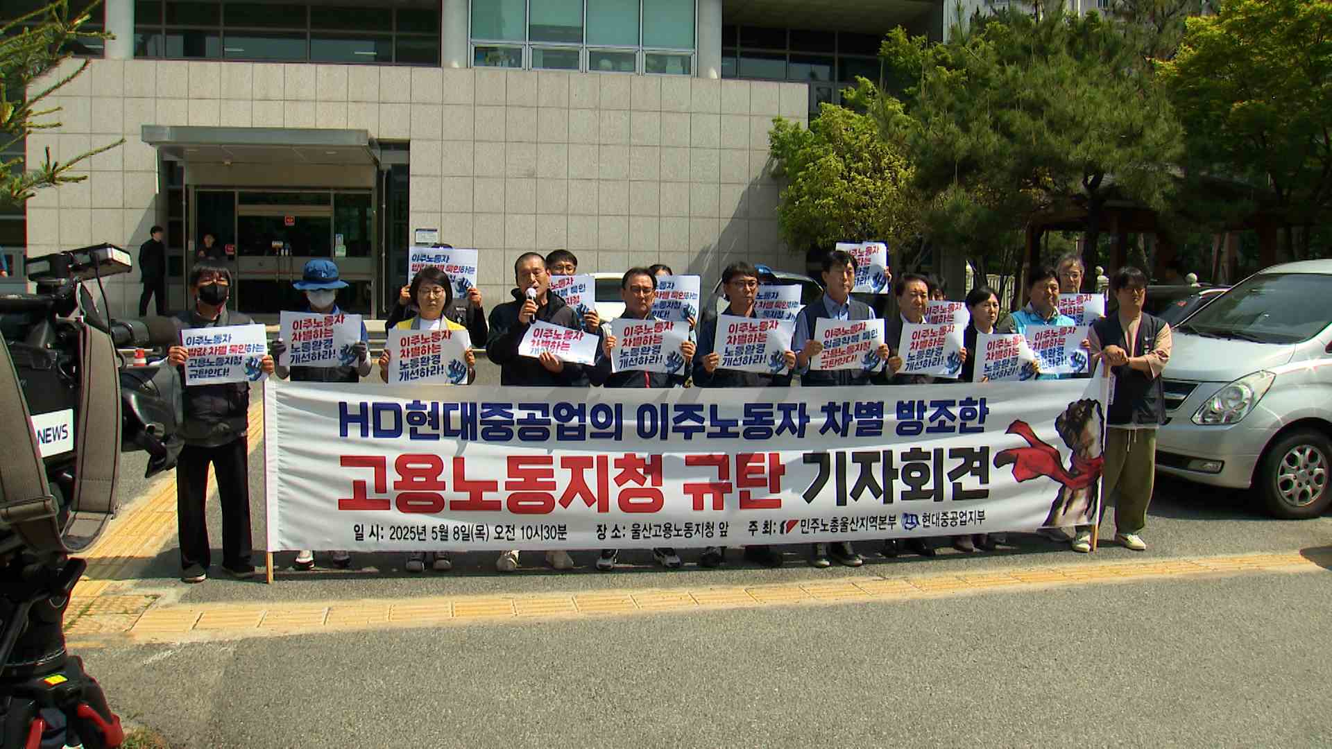 금속노조 HD현대중공업 지부가 외국인 노동자에게만 식대와 기숙사비를 공제하고 있다며 임금 차별을 중단하라고 요구했습니다. 노조는 외국인에게만 월 50만 원의 비용을 공제해 차별하고 있다는 내용의 진정에 대해 고용노동부가 차별이 아니라고 답했다며 이 역시 직무태만이라고 주장했습니다. 이에 대해 고용노동부는 ...