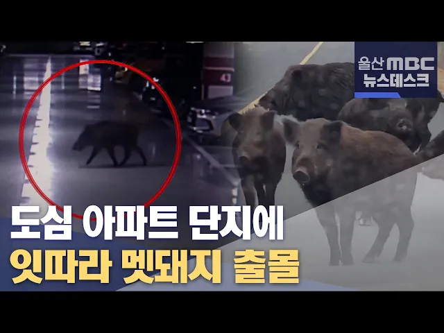 울산 도심의 아파트에 멧돼지가 잇따라 나타나 소동을 벌이고 있습니다. 멧돼지가 아파트 단지 뿐만 아니라 지하 주차장까지 들어오는 바람에 주민들이 불안을 호소하고 있습니다. 이용주 기자가 보도합니다. 멧돼지 한 마리가 아파트 지하 1층주차장 출입구로 뛰쳐 들어옵니다.지하 2층까지 내려간 멧돼지는주차된 차량 사...
