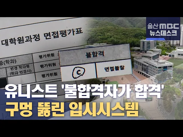 ◀ANC▶유니스트가 대학원생 입학과정에서불합격자가 합격하고직원이 자녀의 입학서류를 열어본 사실이드러났습니다.유니스트는 사태가 터진 뒤에야재발 방지를 위해 입시 시스템을고치겠다고 밝혔습니다.이용주 기자.◀VCR▶◀END▶유니스트 2021학년도 전기 1차 대학원 입시에 지원한 A씨의 면접 평가표입니다.전공 세...
