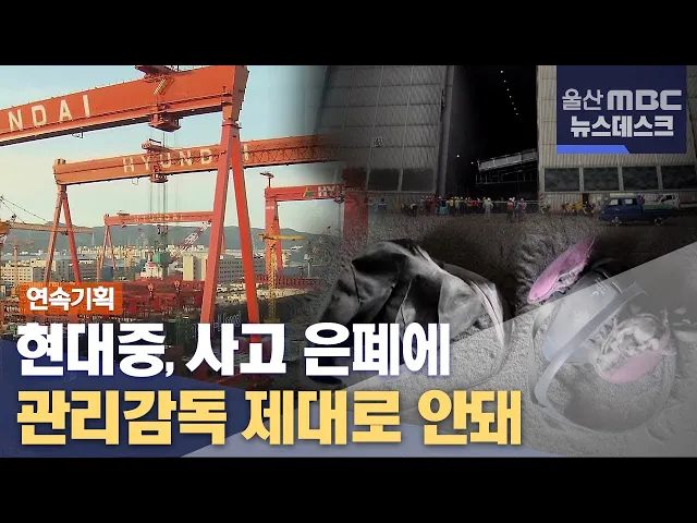 현대중공업 중대재해 근절을 위한 연속기획 마지막으로, 오늘은 현대중공업에서 왜 이렇게 많은 사고가 일어나는지 그 이유와 함께 대책을 취재했습니다. 최지호 기자의 보도입니다. 지난 2014년 현대중공업에서 일하던 노동자가 호스에 목이 감겨 숨진채 발견됐습니다. 유가족과 동료들은 사고사라고 주장했지만 목격자가...