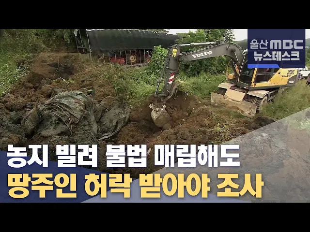 ◀ANC▶농지를 빌려 몰래 건설 폐기물을 매립하는 불법 행위가 잇따르고 있습니다.불법 매립이 의심되는 한밭의 땅을 파헤쳐봤더니 폐기물로 의심되는 물질이 쏟아져나왔습니다. 하지만 현장 단속은 땅 주인의 동의가 있어야만 가능합니다.최지호기자가 취재했습니다.◀END▶◀VCR▶울산 울주군 삼평리의 한 농촌마을포...