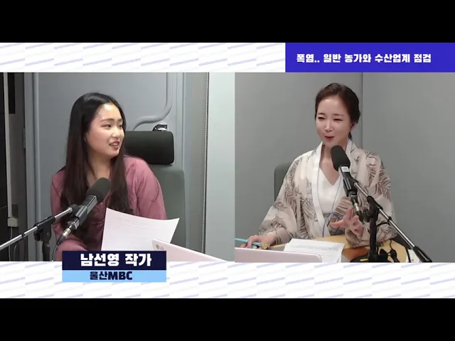 농업인 고령화로 인한 교육 부재...쉬운 길을 어렵게 돌아가 어업인 대상, 지자체 연계 보험 가입 권유 농업, 어업 폭염 피해 대책과 지원은 아직 모자라 방송 : 울산MBC 라디오 김연경의 퇴근길 톡톡 표준FM 97.5(18:10~19:00) 진행 : 김연경 앵커 대담 : 남선영 작가 날짜 : 20210722오늘이 1년 중 가장 덥다는 대서입니...