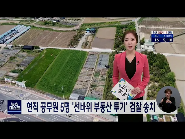 현직 공무원 5명이 대규모 공공택지 개발사업 예정지인울주군 선바위 일원에부동산 투기를 한 혐의로 입건돼검찰에 송치됐습니다.울산시와 울산경찰청에 따르면시청 6명, 울주군 2명 등 8명의 공무원에 대한 농지법 위반 혐의를 수사한 결과 시청 3명, 울주군 2명이농지를 사들여 방치한 것으로 드러났습니다.국토부는 지난...