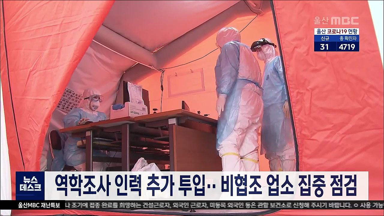 오늘(9/11) 울산에서는 코로나19 신규 확진자가 31명 발생했습니다. 중구 옥교탕과 남구 직장인모임 등 집단감염 관련 확진자가 5명 추가로 발생했습니다. 20명은 기존 확진자를 접촉했다 코로나19에 감염된 것으로 파악됐으며, 6명은 감염 경로를 조사중입니다. 현재까지 울산지역의 코로나19 누적 확진자는 모두 4천 719...