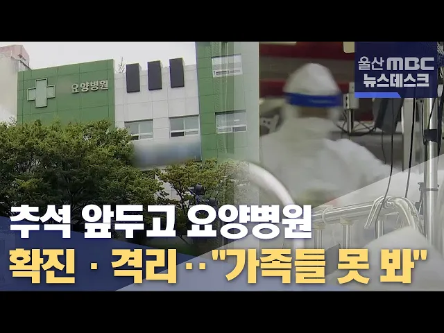 오늘(9/10) 울산에서는 코로나19 확진자가 34명 발생했습니다. 남구 요양병원 확진자는 26명으로 늘었는데요, 어르신들이 추석을 앞두고 또 다시 가족을 못 만나는 안타까운 상황이 이어지고 있습니다. 김문희 기자. 울산 남구의 한 요양병원. 대부분 70대 이상의 노인 70여 명이 입원해 있는데, 이곳에서 지난 5일 첫 확진...