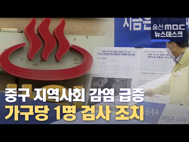 ◀ANC▶울산에서 여름 휴가철 이후 시작된 코로나19 대유행이 좀처럼 수그러들지 않고 있습니다.특히 최근에는 중구의 유흥업소와 목욕탕 여러 곳에서 집단감염이 발생해 중구 지역의 확진자가 크게 늘었습니다.중구는 울산에서 처음으로 가구당 1명씩 코로나19 검사를 받도록 행정 조치를 내렸고, 공공시설 운영도 중단...