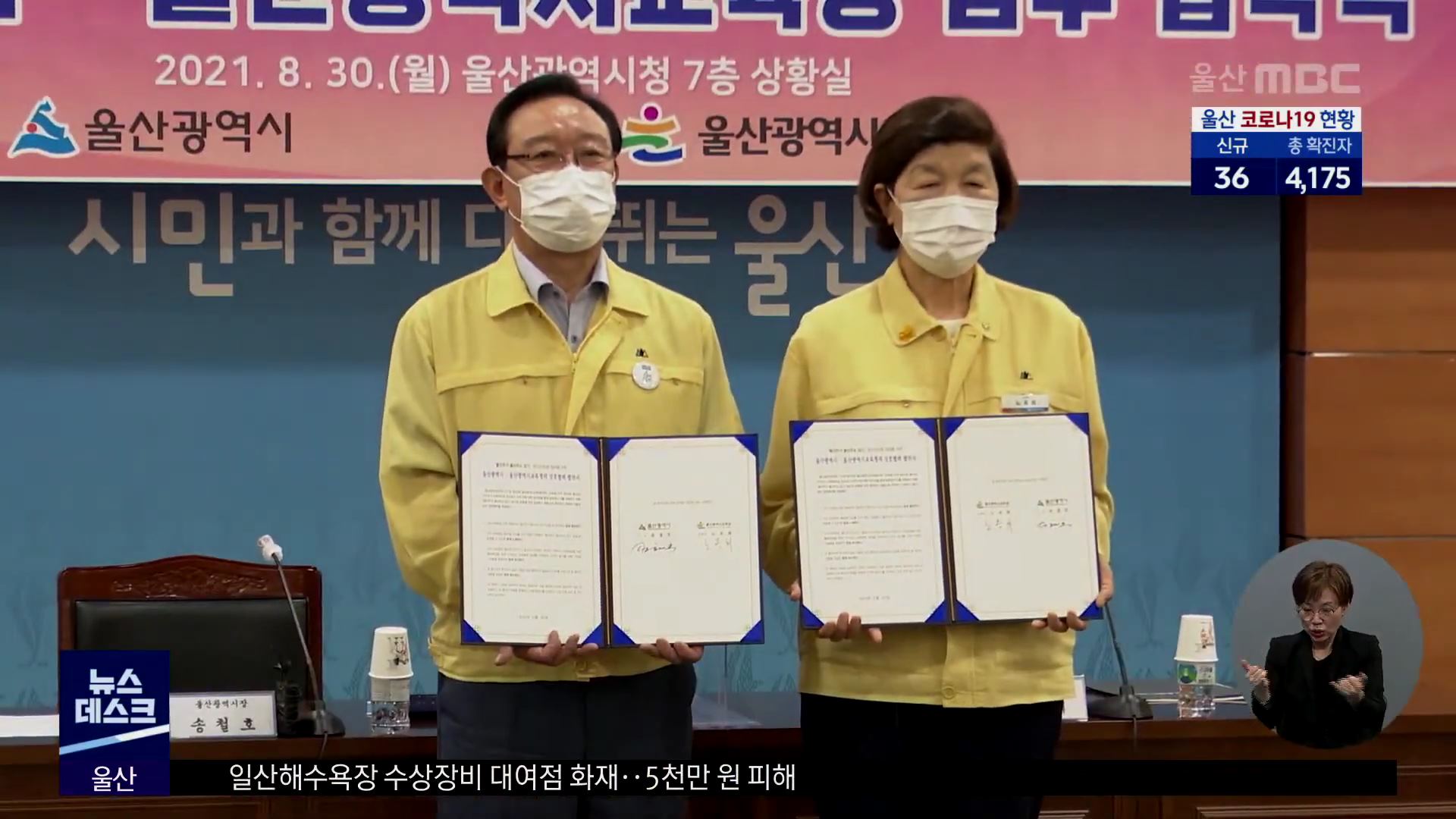 울산시와 울산시교육청이 울산주거·울산주소 갖기 운동 업무 협약을 맺었습니다. 울산시교육청은 울산의 인구 감소 문제를 극복하기 위해 이 운동에 동참하고, 교육청 직원과 각급 학교에 지역사회에 대한 관심을 갖도록 홍보에 나설 예정입니다.//