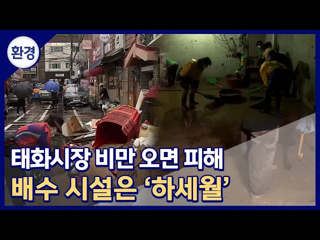 ◀ANC▶태풍 '오마이스'의 직격탄을 맞은 태화시장은5년 전 태풍 '차바'의 악몽이 재현됐습니다.배수 시설 부실이 또 원인으로 지목됐는데, 상인들은 앞으로 다가올 태풍은 또 어떻게 버텨야할지 막막한 상황입니다.정인곤 기자. ◀END▶ ◀VCR▶제 12호 태풍 오마이스의 직격탄을 맞은 울산 중구 태화시장.안내방송EFF...