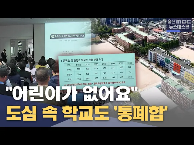 [앵 커] 학교 통폐합 문제가 외곽 지역에서 도심까지 파고들고 있습니다. 저출산 여파로 아이들이 줄어들면서 도심 속 초등학교들도 통폐합을 추진에 나섰는데요. 2050년이 되면 학령인구가 절반 이상 줄어들어 사라지는 학교가 갈수록 늘어날 전망입니다. 정인곤 기자 [리포트] 아파트 단지가 밀집한 남구 달동의 주택가. ...