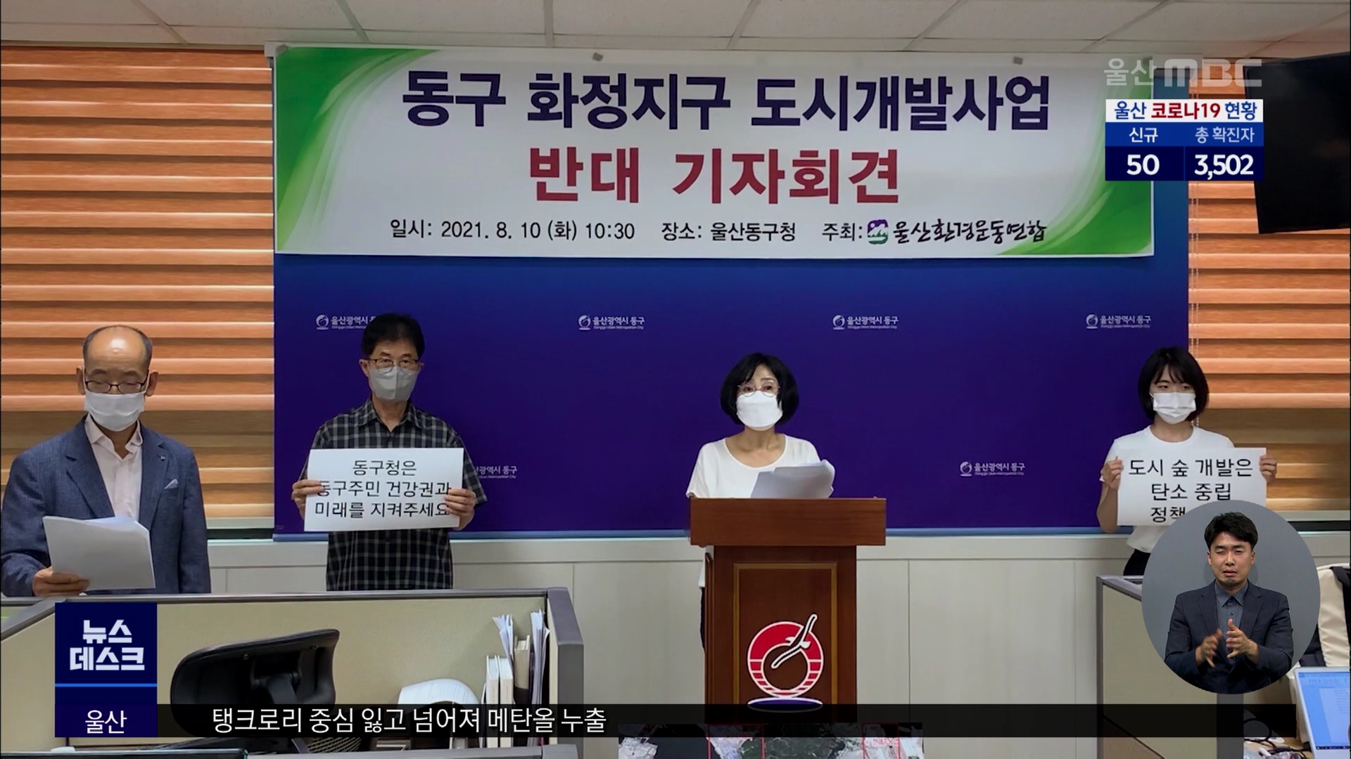 동구 화정지구에 17만 제곱미터 규모의 대규모 도시개발사업이 추진되자 환경단체가 개발 반대 입장을 밝혔습니다. 울산환경운동연합은 오늘(8/10) 동구청 프레스센터에서 기자회견을 열고 도시 숲 기능을 하고 있는 화정지구가 반드시 보존돼야 한다고 주장했습니다. 환경운동연합은 동구는 전국 화학물질 배출량 1위 자치...