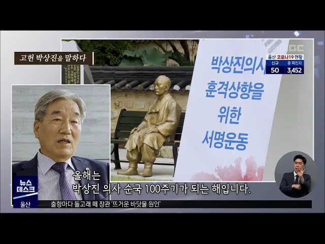 ◀ANC▶광복회 총사령 박상진 의사의순국 100주년을 맞아 울산MBC는박상진 의사가 걸어온 길을 다시 돌아보는 시간을 마련했습니다.오늘은 첫 순서로 박상진 의사의 서훈등급을높이기 위해 서명운동을 벌이고 있는우리역사 바로세우기 운동본부 류복수 대표의 이야기를 들어봅니다. ◀END▶ ◀VCR▶류복수 / 우리역사 ...
