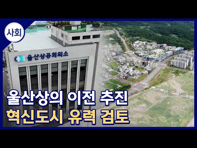 ◀ANC▶준공된 지 40년 가까이 된 울산상공회의소 건물을 울산혁신도시로 이전하는 방안이 추진되고 있습니다. 이전 대상부지는 수 년째 활용방안을 찾지 못하고 있는 혁신도시 클러스터 부지가 유력하게 검토되고 있습니다. 이상욱 기자. ◀VCR▶지난 1983년 준공된 울산상공회의소 건물입니다.건물 노후가 진행돼 유지...