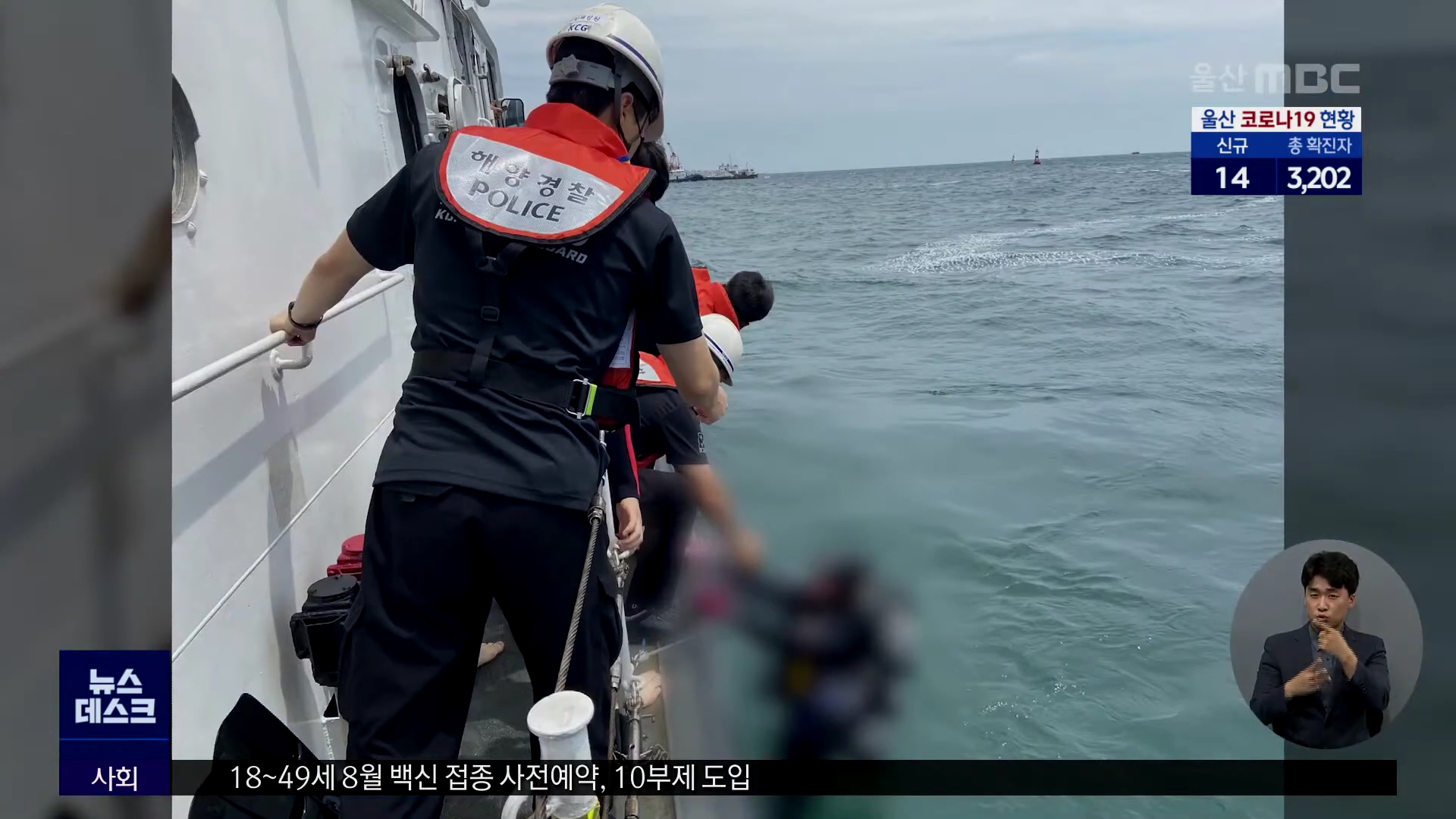 오늘(7/30) 오후 12시 24분쯤 울주군 진하 인근 해상에서 전복양식장 작업을 위해 입수한 잠수부 58살 A 씨가 강한 조류로 인해 표류되는 사고가 발생했습니다. 동료의 신고를 받고 출동한 해경은 40분 동안 수색 작업을 벌여 전복양식장에서 약 2해리 떨어진 남신항 인근 해상에서 A 씨를 발견해 구조했다고 밝혔습니다.//