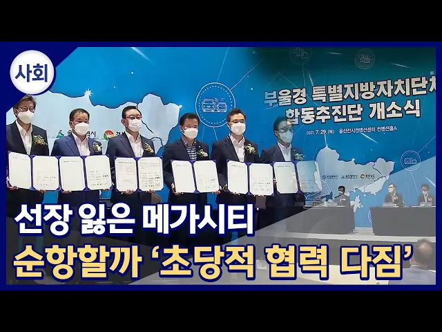 ◀ANC▶울산과 부산, 경남이 함께 모여 특별지방자치단체를 만들기 위한 움직임이본격적으로 시작됐습니다.부울경 연합을 주도하던 김경수 전 경남지사가 자리를 잃은 데다 부산시장도 바뀌어서 업무의 추진력이 예전만 하겠냐는 우려도 있지만, 세 시도가 모두 초당적인 협력을 다짐했고 정부도 지원을 약속했습니다.유...