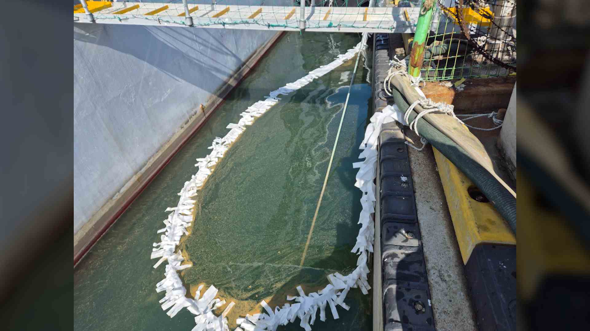 기름 저장탱크서 팜유 유출‥ 해경 방제 작업