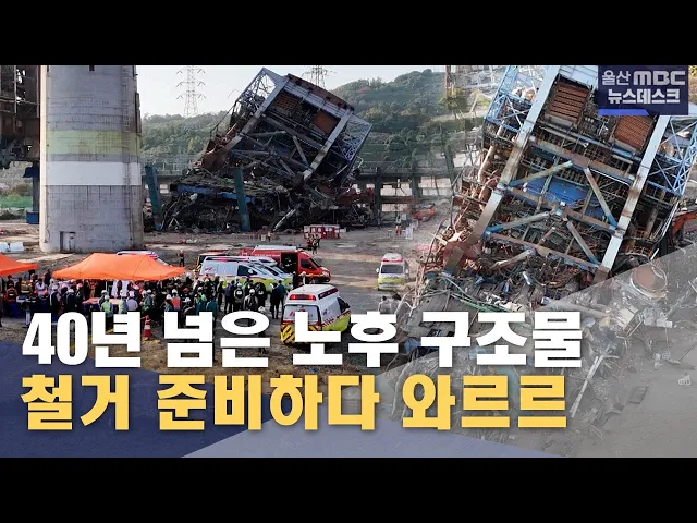 [앵 커] 이번 붕괴사고가 난 울산화력발전소는 1981년 준공된 노후시설물입니다. 2021년 가동을 중단하고 철거를 준비하다 한 순가에 무너져 내렸는데요. 발파를 위해 기둥을 사전에 잘라내는 작업을 하다 하중을 버티지 못한 것으로 추정됩니다. 이용주 기자. [리포트 ] 사고가 난 철골구조물은 지난 1981년 준공된 울산화...