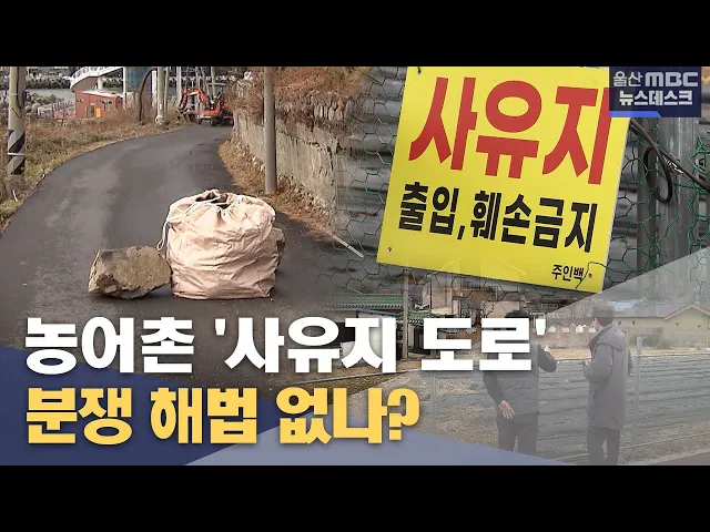 [앵 커] 최근 농어촌 지역에서 법정 도로가 아닌 마을 안길 분쟁으로 인심이 흉흉해지고 있다는 소식 전해드렸는데요. 울주군이 전수조사를 했더니 소유주가 있는 비법정 도로가 무려 160만㎡에 달하고, 이를 매입하는데 엄청난 예산이 소요되는 것으로 나타났습니다. 이상욱 기자. [리포트] 농어촌 지역 마을 안길 분쟁은 ...