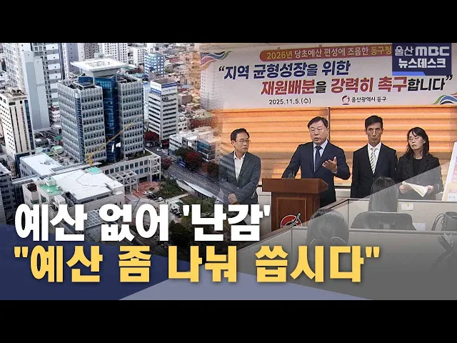 [앵커] 재정이 열악한 동구가 울산시에 예산 지원 확대를 요구하고 나섰습니다. 울산시가 자치구에 지원하는 예산 비율이 전국에서 가장 낮다는 건데요. 울산시도 대규모 사업 추진으로 지원 여력은 없다는 입장입니다. 이다은 기자입니다. [리포트] 동구가 울산시에 공개적으로 예산 지원을 요청하고 나섰습니다. 재정 여...