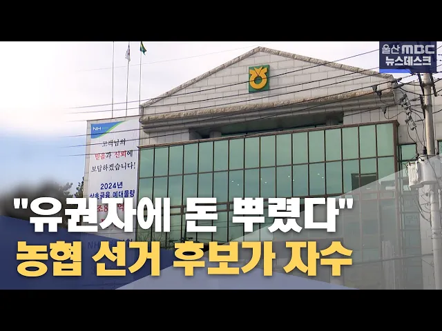 [ 앵 커 ]울산의 한 지역 농협 이사 선거에 출마한 후보들이 선거 과정에서 돈을 나눠줬다며 경찰에 자수했습니다. 자신들이 처벌을 받더라도 금품 선거 관행을 고쳐야 한다고 생각했다는데요. 외부로 드러나지 않을뿐 대부분 단위농협에서 이런 일이 비일비재하다고 합니다. 홍상순 기자입니다. [ 리포트 ]선거 과정에서 ...