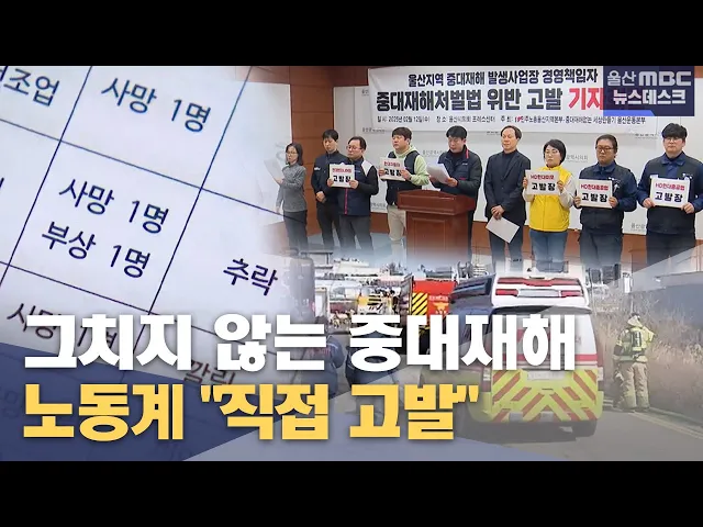 [엥커]연초부터 울산지역 중대재해가 잇따라 발생하면서 올 들어 지금까지 산업현장에서 노동자 6명이 숨지고 2명이 다쳤습니다. 1주일에 1명꼴로 노동자가 숨진 셈인데요.참다못한 노동자 단체들이 중대재해 발생 사업장 관계자들을 처벌해 달라며 고용노동부에 고발장을 제출했습니다. 이용주 기자입니다. [리포트]HD 현...
