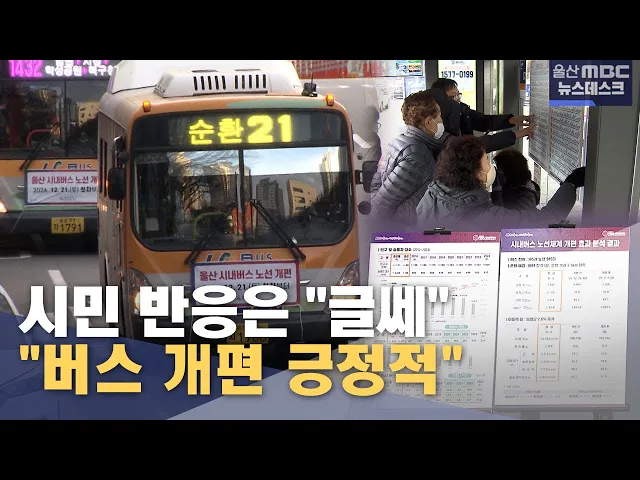 [앵커]울산시가 시내버스 노선 전면 개편으로 긍정적인 효과가 확인됐다고 설명했습니다. 노선 미세조정으로 버스 불편 민원도 거의 접수되지 않고 있다고 밝혔는데요. 하지만 버스 정류장에서 만난 시민들은 여전히 불편함을 호소하고 있었습니다. 정인곤 기자 [리포트]지난해 12월, 광역시 승격 이후 첫 시내버스 노선 전...