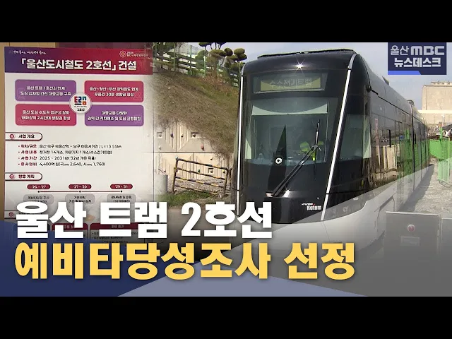 ◀ 앵 커 ▶ 울산 도시철도 2호선 사업이 정부의 예비타당성 조사 대상 사업으로 선정됐습니다. 울산시는 북구와 중구, 남구를 오가는 2호선 개통으로 1호선과 함께 십자형 교통망을 완성한다는 계획입니다. 최지호 기자. ◀ 리포트 ▶ 기획재정부가 울산 도시철도 2호선 사업을 예타 조사 대상 사업으로 선정했습니다. 수천억...
