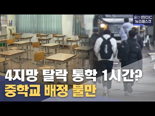 [앵커]초등학교와 달리 중학교는 무작위 추첨으로 학교가 배정됩니다. 그런데 학군지가 워낙 넓어 4지망까지 제출하는 희망 학교에 모두 탈락하는 경우도 생기고 있습니다. 등하교에 1시간이 걸리는 학교를 배정받은 학부모들의 불만이 매년 반복되고 있습니다. 최지호 기자. [리포트]30대 맞벌이 직장인 A씨는 최근 초등학...
