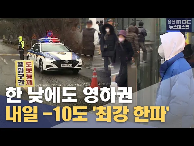 [ 앵 커 ]올겨울 최강 한파가 찾아오면서 울산도 맹추위가 기승을 부리고 있습니다.첫 한파주의보가 내려진 가운데 내일은 최저기온이 영하 10도까지 내려가겠고 한낮 기온도 평년을 밑돌 것으로 보입니다. 이용주 기자입니다.[ 리포트 ]추위 속에 즐기는 게 제맛인 스케이트장이 텅 비다시피 했습니다. 겨울방학 기간인데...