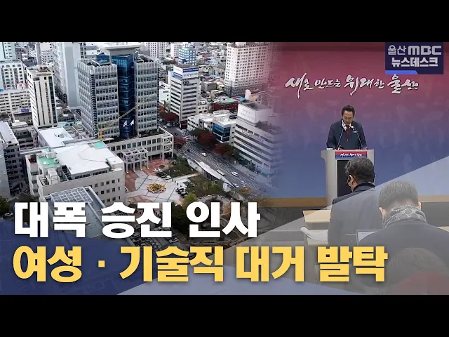 [ 앵 커 ] 울산시가 오늘(12/23) 2025년 상반기 고위직 정기 인사를 단행했습니다. 광역시 승격 이후 가장 큰 폭의 승진 인사였는데, 여성과 기술직 공무원의 대거 승진 발탁이 눈에 띄는 대목입니다. 조창래 기자가 보도합니다. [ 리포트 ] 이번 울산시의 5급 이상 정기 인사의 첫번째 핵심 키워드는 여성입니다. 행정직군...