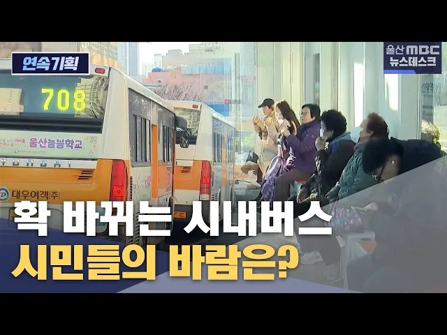 [앵커]대대적으로 변화하는 울산의 교통 지도에 대한 울산MBC의 연속 기획.세 번째 순서로 시내버스 노선 전면 개편을 앞두고 버스를 이용하는 시민들이 뭘 바라고 무엇을 우려하는지 직접 들어봤습니다. 이다은 기자입니다. [리포트]광역시 승격 이후 처음 시행되는 시내버스 노선 전면 개편.많은 우려와 반발에도 불구하...