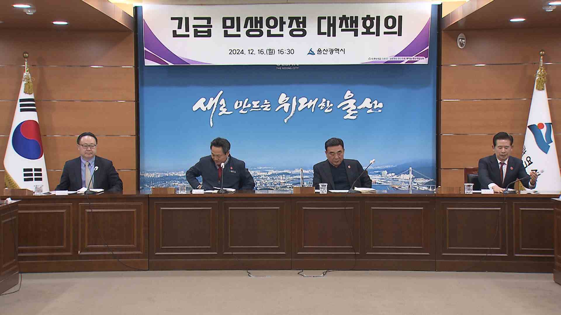 울산시는 오늘(12/16) 오후 시청 상황실에서 김두겸 시장 주재로 긴급 민생안정 대책회의를 열었습니다. 김 시장은 중앙정치가 혼란스럽더라도 모든 행정력을 동원해 시민들이 안심하고 평온한 일상을 회복하는데 주력해 줄 것을 당부했습니다. 또, 소비 진작을 위해 내년 예산 조기 집행 준비를 철저히 하고 계획된 행사도...