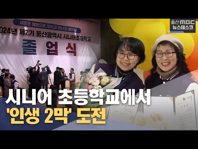 ◀ 앵 커 퇴직 이후 인생 2막을 시작하는 어르신들을 위한 시니어 초등학교가 졸업생을 잇따라 배출하고 있습니다. 일자리를 찾아 울산을 찾아온 사람들이 은퇴한 후에도 울산에서 살 수 있도록 돕고 있다고 합니다. 최지호 기자. ◀ 리포트 ▶ 졸업식 노래가 울려퍼지는 강당. 보라색 점퍼를 입은 학생들이 줄지어 졸업장을 ...