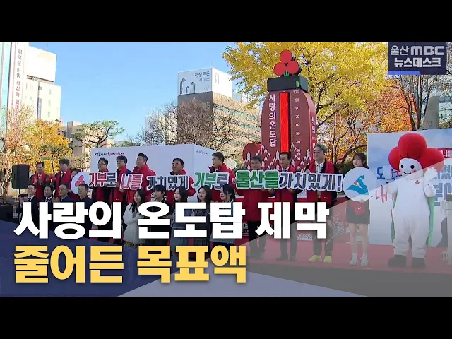 ◀ 앵 커 ▶ 울산사랑의열매 '희망 2025 나눔캠페인'이 오늘(12/2)부터 본격적인 모금활동에 들어갔습니다. 얼어붙은 지역 경기 상황을 감안해 목표액을 지난해보다 줄였다는데, 개인 기부 참여율이 100도 달성의 열쇠가 될 것으로 보입니다. 이용주 기자. ◀ 리포트 ▶ 연말 모금 활동의 시작을 알리는 사랑의 온도탑이 불을 ...