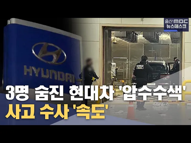 ◀ 앵 커 ▶ 경찰과 고용노동부가 오늘(12/2) 현대차 울산공장에 대한 압수수색을 벌였습니다. 경찰이 수사전담팀을 구성하는 등 본격적인 조사가 시작되며 사고 원인 규명도 속도를 내고 있습니다. 정인곤 기자 ◀ 리포트 ▶ 경찰과 고용노동부가 현대차 울산공장에 대한 압수수색을 진행했습니다. 지난달 19일 차량 성능 시험...