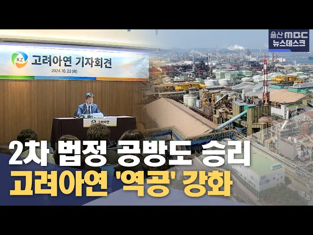 [앵커]자사주 공개매수가 문제가 없다는 법원의 최종 판단이 나오면서 고려아연이 오늘(10/22) 두 번째 기자회견을 열고 공세를 강화하고 나섰습니다.MBK·영풍의 사기적인 시장 교란 행위에 대해 법적 책임을 묻겠다고 밝힌 건데, MBK·영풍은 본안소송에서 다시 심판을 받겠다고 맞서고 있습니다. 이상욱 기자가 보도합니다...