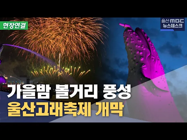 [앵커]울산고래축제가 오늘부터 나흘 동안 남구 장생포 일대에서 펼쳐집니다.오늘 울산MBC 뉴스데스크는 이곳 장생포 고래문화특구에서 전해드리겠습니다. 축제 현장에서는 조금 전 개막식이 시작됐다고 하는데요. 정인곤 기자, 현장 분위기는 어떤가요? [기자]네, 저는 지금 2024 울산고래축제가 열리고 있는 남구 장생포 ...